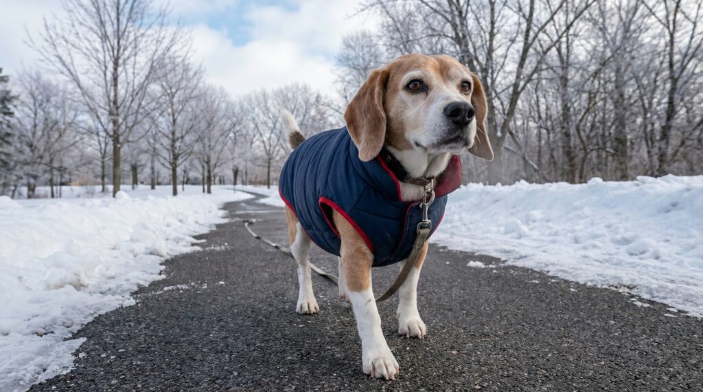 Psi s krajšo dlako ali starejši psi potrebujejo dodatno zaščito pred mrazom. Plašček ali pulover lahko pomaga ohranjati telesno toploto in zmanjša togost sklepov.