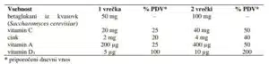 Sestavine: Sladkor, sredstvo za zgostitev (arabski gumi, ksantanski gumi), sredstvo za uravnavanje kislosti (citronska kislina), naravna aroma, betaglukani iz kvasovk (Saccharomyces cerevisiae), sok rdeče pese v prahu (Beta vulgaris L.), vitamin C (L-askorbinska kislina), cinkov citrat, vitamin D3 (holekalciferol), sredstvo proti sprijemanju (silicijev dioksid) in vitamin A (retinilacetat).