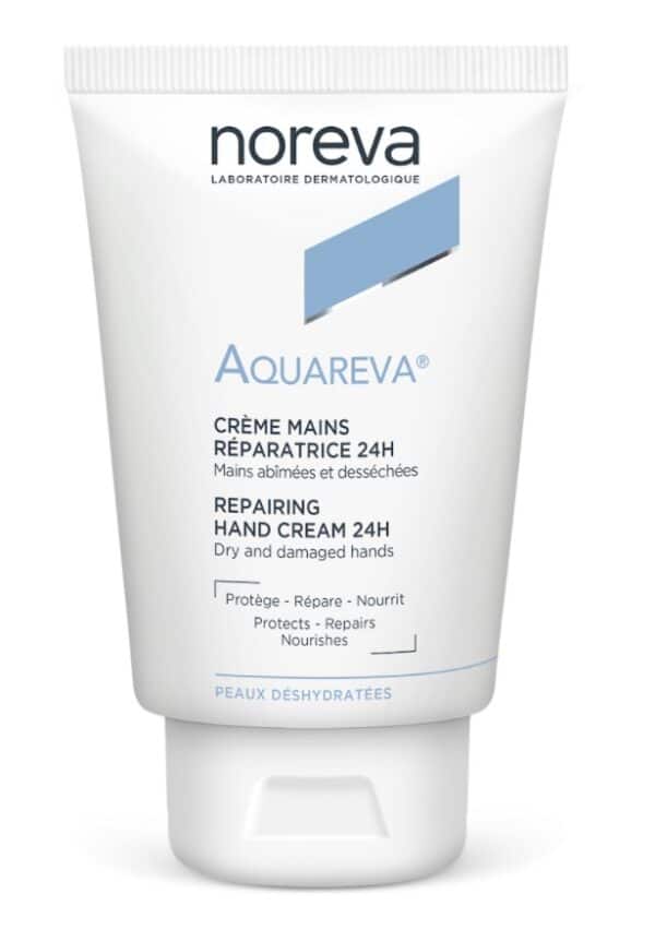 Noreva Aquareva, 24h obnovitvena krema za roke, 50 ml za suho in poškodovano kožo rok, ščiti, obnavlja ter neguje. Z minerali ledeniških voda. Krema se hitro vpija. Visokokoncentrirana formula. Zadostuje že majhna količina kreme.